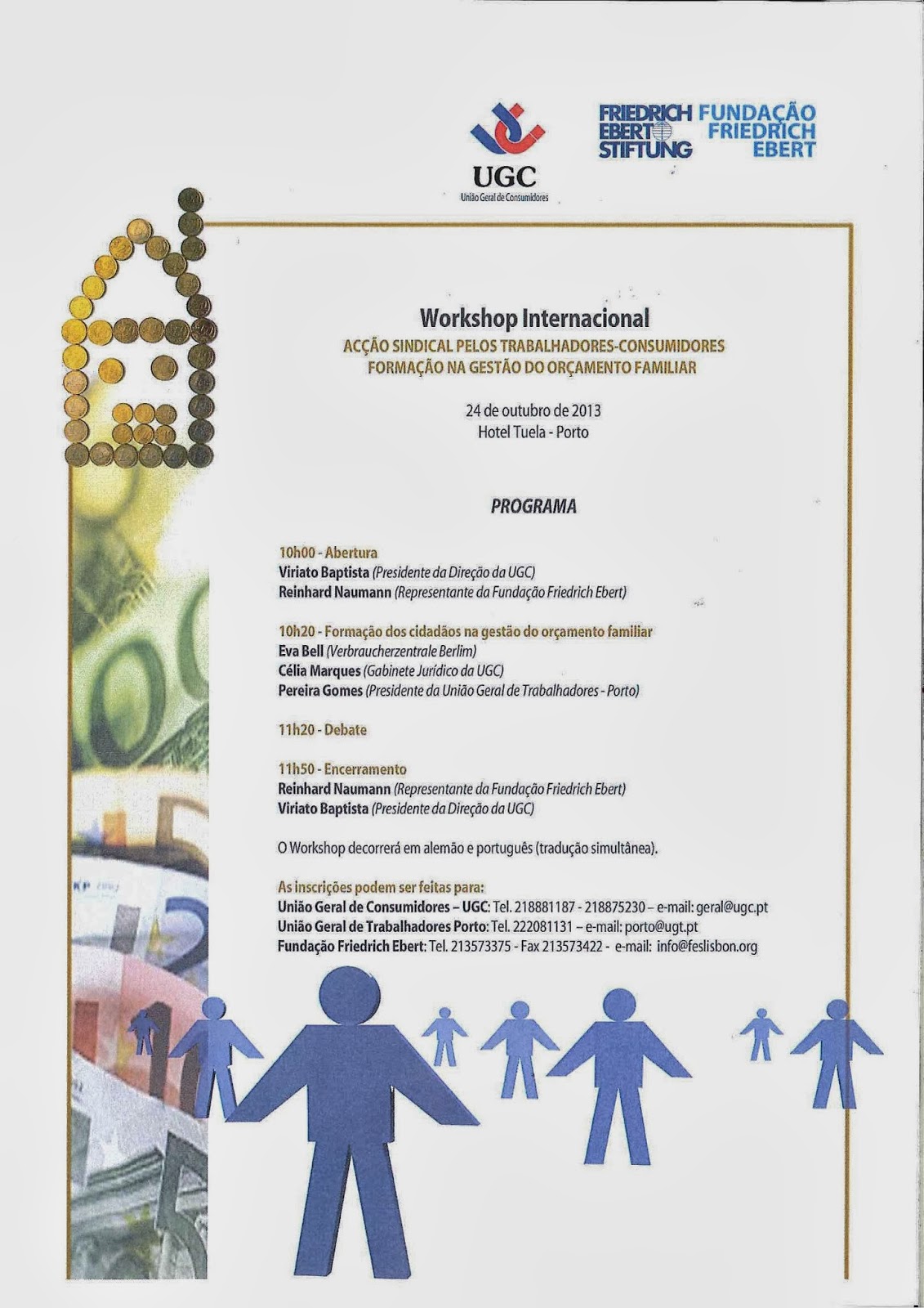 Aproveitamos para divulgar igualmente o Workshop Internacional que decorrerá na mesma data e local, às 10h00, subordinado ao tema "Acção Sindical pelos Trabalhadores-Consumidores - Formação na Gestão do Orçamento Familiar".